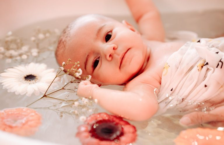 Bain enveloppé jusqu'à 2 mois et demi—90 € / 1 h, un moment apaisant pour accueillir les émotions de bébé et renforcer le lien, à Saint‑Zacharie ou à domicile.